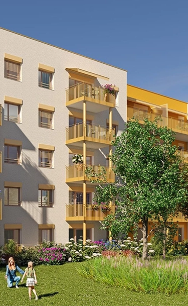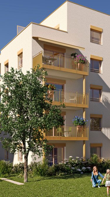 Découvrez une architecture contemporaine pensée pour votre bien-être. Cette résidence allie élégance moderne et intégration naturelle dans son environnement. Les façades épurées, animées de joints creux sculptés et d’un soubassement soigné, reflètent le souci du détail qui signe ce projet. À l’intérieur, les balcons s’ouvrent sur un parc arboré, créant une atmosphère chaleureuse et vivante. Menuiseries bois, teintes sable apaisantes et enduits crème lumineux s’harmonisent pour offrir une ambiance à la fois actuelle et intemporelle.
