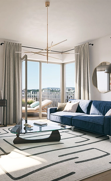 Dès le 2 pièces, prolongez votre salon sur un balcon conçu comme un véritable écrin de vie extérieure. Pour les familles, les grands appartements en étages s'ouvrent vers des terrasses panoramiques allant jusqu'à plus de 50 m², pour des moments de convivialité uniques. Tous les plans des appartements sont conçus pour s'adapter à vos besoins : création d'une chambre voire d'un studio indépendant, espaces pour télétravailler au calme, séjours dont on module la surface selon les usages… Votre intérieur s’adapte facilement à votre mobilier, pour un aménagement harmonieux et fluide.