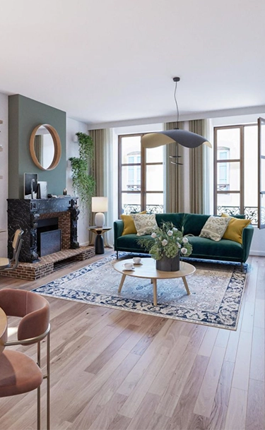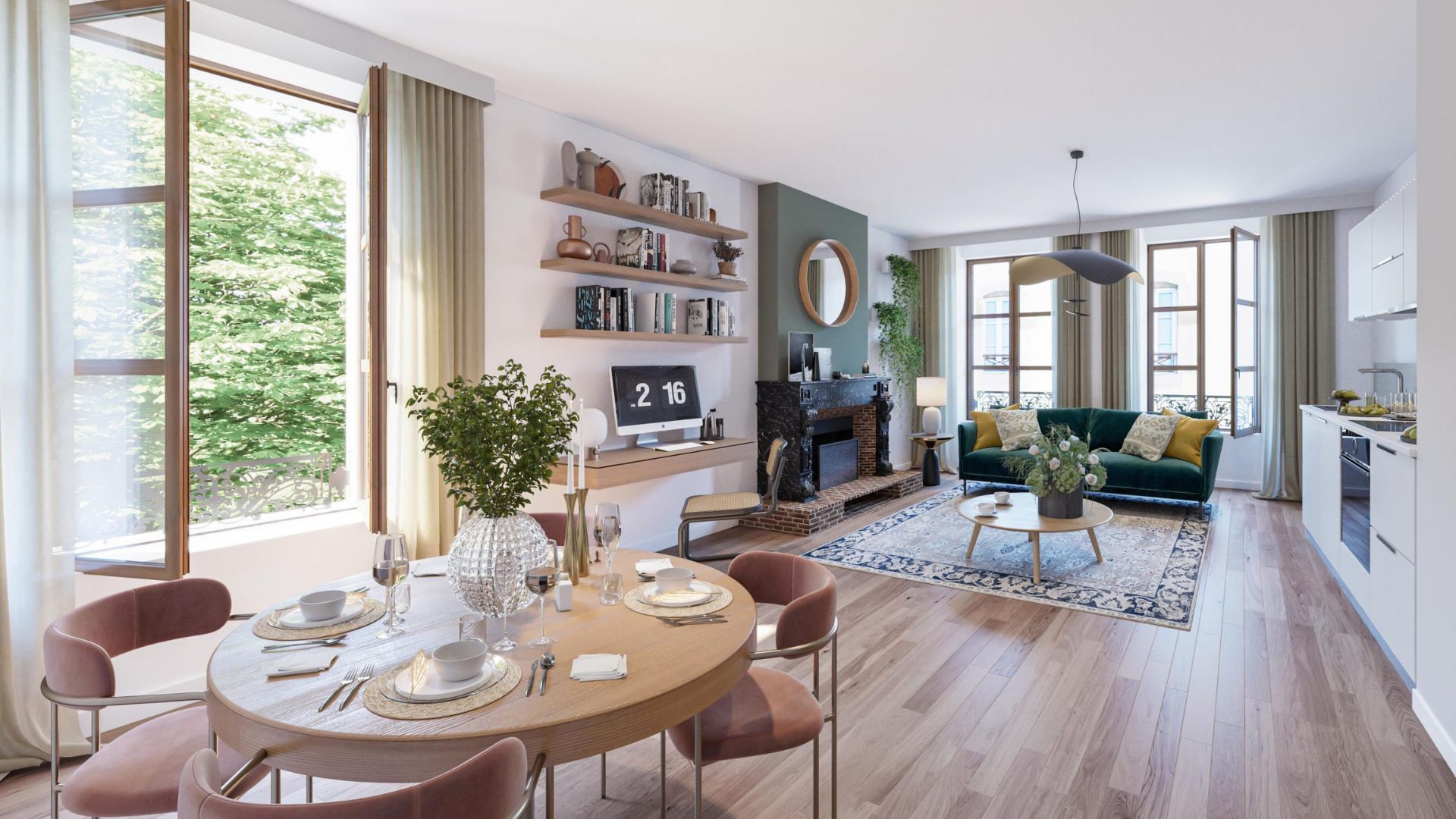 Conçus pour la vie contemporaine, les appartements privilégient la lumière naturelle et des volumes agréables. Les cuisines sont équipées (meubles bas et hauts, plan de travail en quartz, évier, robinetterie mitigeur, plaques vitrocéramiques, hotte, et selon typologie réfrigérateur habillé ou four encastré). Les pièces de vie reçoivent un parquet contrecollé, tandis que les pièces humides et les sols du rez-de-chaussée sont en carrelage grès cérame, avec faïence murale et peinture acrylique. Les sols à caractère patrimonial sont conservés et restaurés dans la mesure du possible.