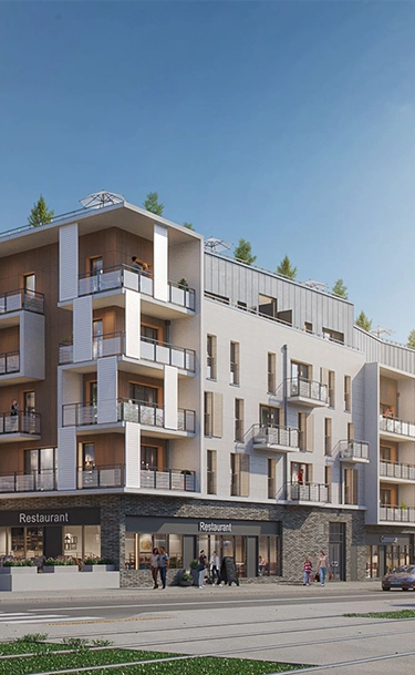 Au cœur de Châtenay-Malabry, découvrez une nouvelle résidence à l'architecture élégante. Son dessin équilibré associe un socle en brique anthracite, des étages en pierre claire et un attique en zinc, pour une silhouette intemporelle. Des brise-soleil clairs rythment les façades et renforcent le confort au quotidien, tandis que les angles ouverts allègent l’ensemble.