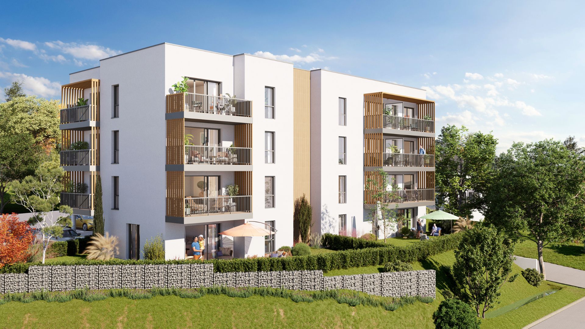 Chaque logement bénéficie d’un extérieur : jardin privatif en rez-de-chaussée ou balcon en étage. Les prestations soignées, la qualité des matériaux et le confort thermique garanti par la réglementation RE2020 viennent compléter un cadre de vie agréable et durable.