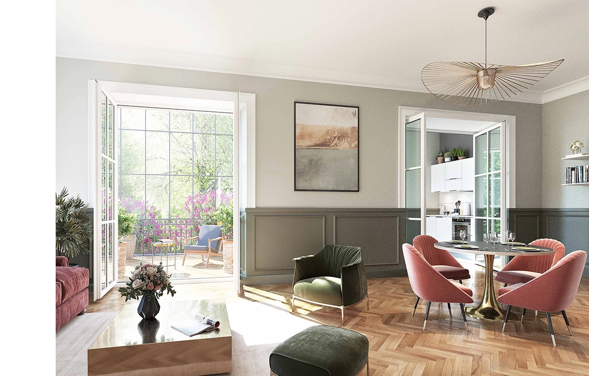 Les appartements, du studio au 3 pièces, proposent des volumes généreux et une conception tournée vers le confort et la luminosité. Certaines configurations bénéficient de belles hauteurs sous plafond, de verrières ou d’une double orientation. En rez-de-chaussée, plusieurs logements s’ouvrent sur des jardins privatifs. Les prestations allient cachet de l’ancien et confort contemporain, avec des matériaux soigneusement sélectionnés, des cuisines équipées et des salles de bain aménagées. Chaque logement offre une atmosphère unique, pensée pour un art de vivre élégant et durable.