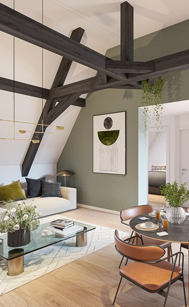 Les appartements, du 2 pièces au 3 pièces, offrent des volumes généreux et une atmosphère unique. Les hauteurs sous plafond remarquables et, pour certains, la charpente apparente, soulignent le caractère du bâti ancien. Les aménagements privilégient la luminosité, la fonctionnalité et des prestations durables, pensées pour un confort moderne au quotidien.