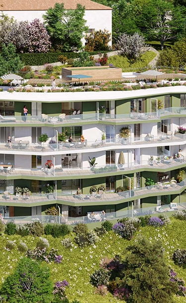 Du 2 au 4 pièces, cette résidence intimiste met l’accent sur les espaces extérieurs, généreux et préservés : terrasses panoramiques, jardins privatifs et solariums exclusifs couronnant les penthouses du dernier niveau. Au centre de l'ensemble, une piscine privée se niche dans un écrin de verdure, créant une oasis de détente suspendue entre ciel et nature.